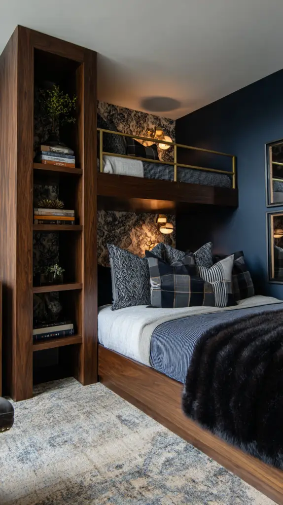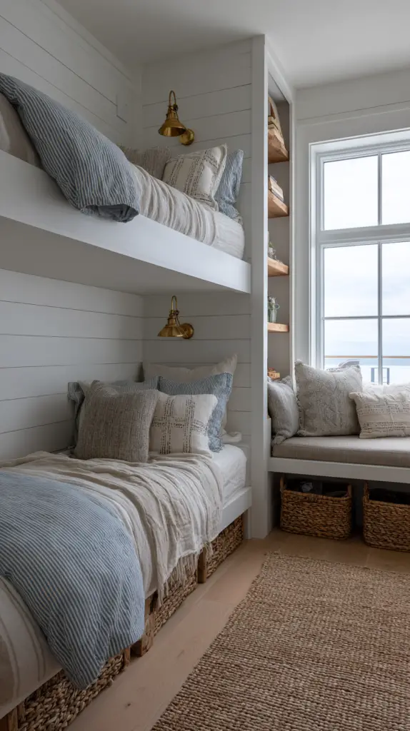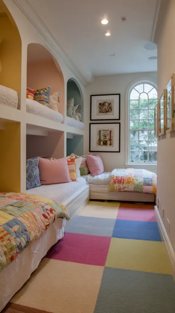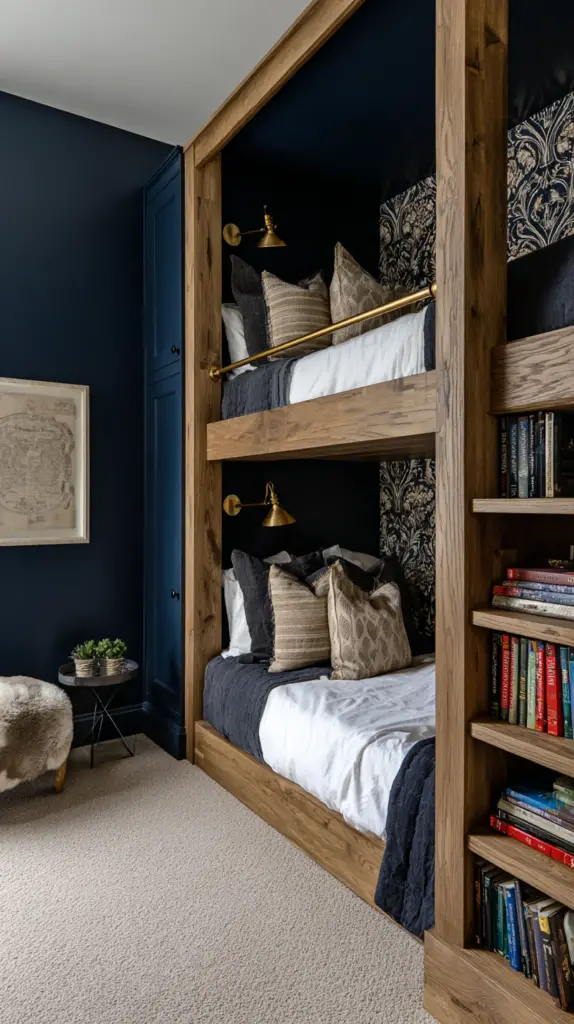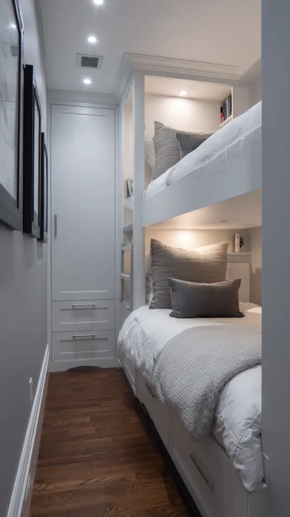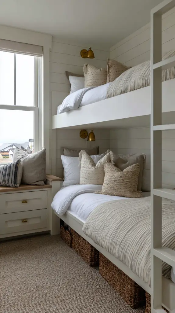 Customize the fort with soft mats, bean bags, or blankets to make it extra inviting. This hidden nook is not only fun but also promotes creativity and independent play. It’s a simple way to add a layer of intrigue and excitement to your bunk room design.