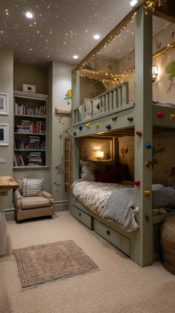 - Climbing Wall Access: A playful yet functional way for kids to reach their beds while staying active.