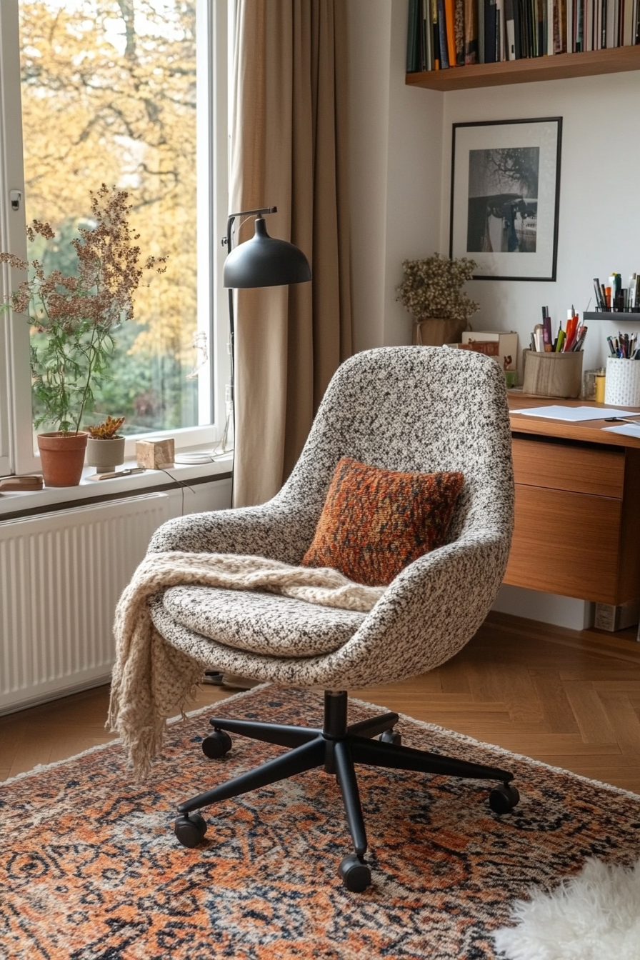 Add cushions or a throw blanket for extra coziness. These additions not only enhance comfort but also add a touch of personal style to your workspace. Choose fabrics that are soft to the touch and colors that complement your overall design scheme.