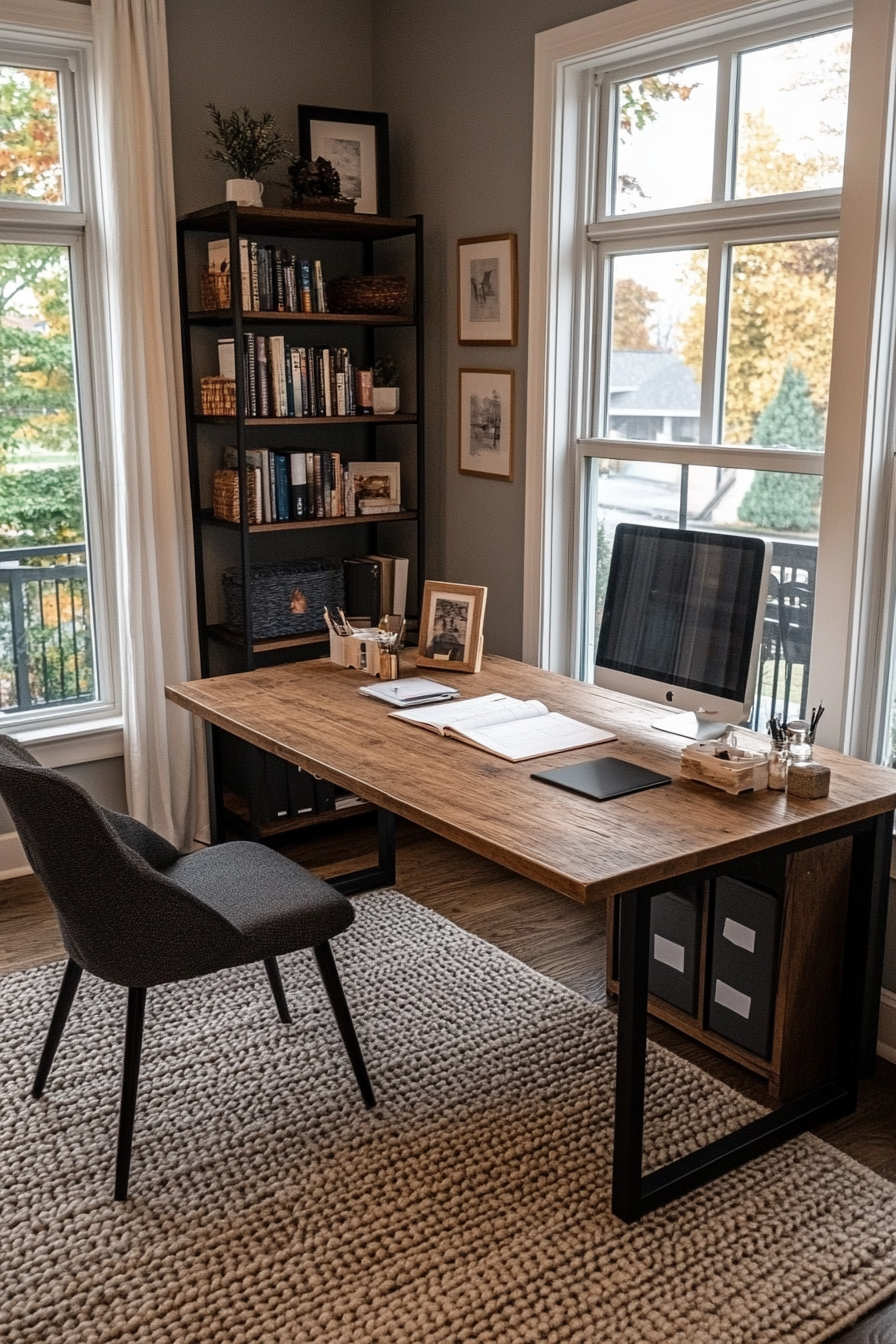 Bring the outdoors in with natural elements like wood, stone, and plants. These materials add warmth and texture to your home office, creating a serene and inviting space. Wooden furniture, such as desks and bookshelves, can make the room feel grounded and organic.