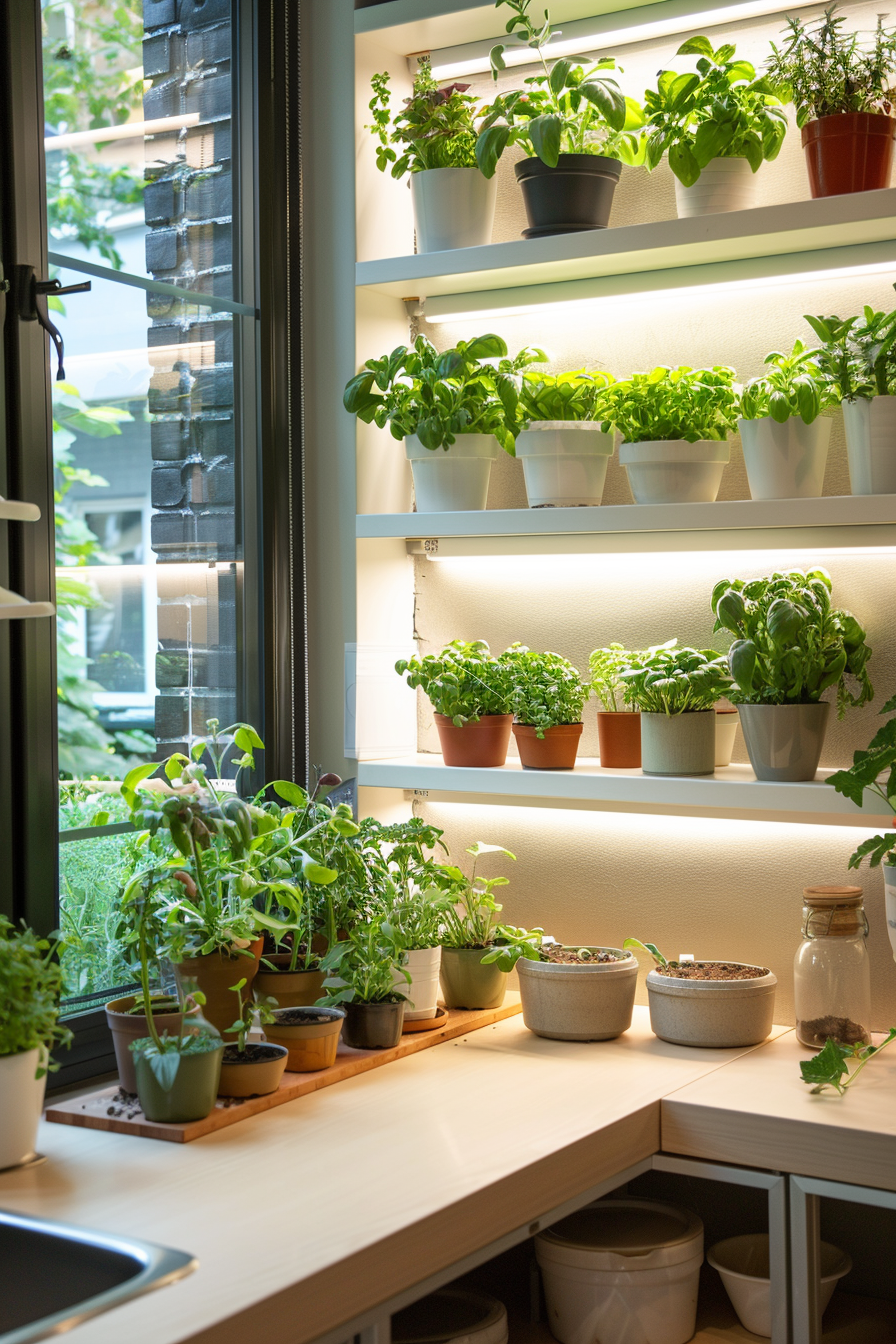 To add aesthetic value and functionality, arrange your indoor garden in a tiered or vertical layout. This not only saves space but also creates a stunning green feature in your kitchen. Use wall-mounted planters or stackable pots to make the most of vertical space.