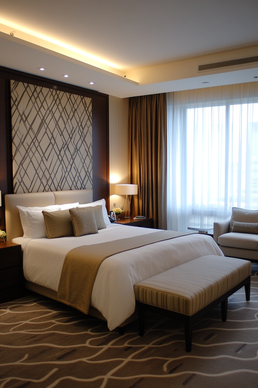 - Floor-to-ceiling curtains amplify this effect for a dramatic, luxurious look.