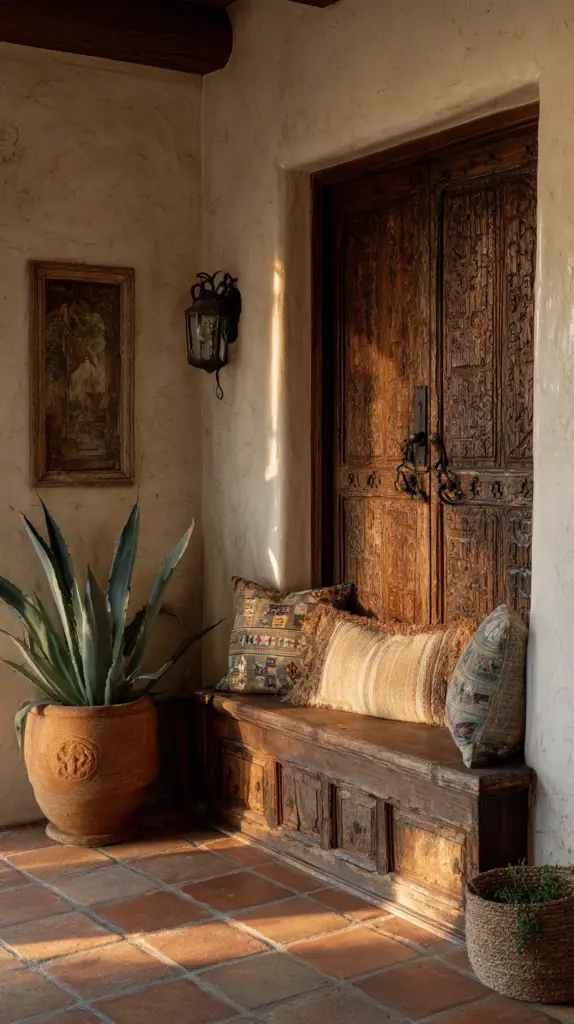 - Splash on Color: Paint an accent wall in a warm hue like burnt orange or adobe red to set the tone.