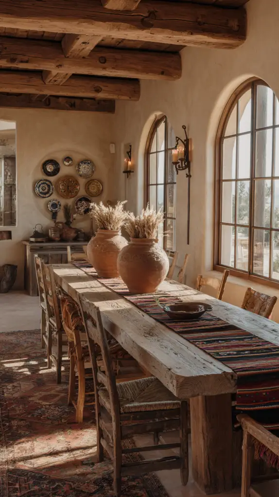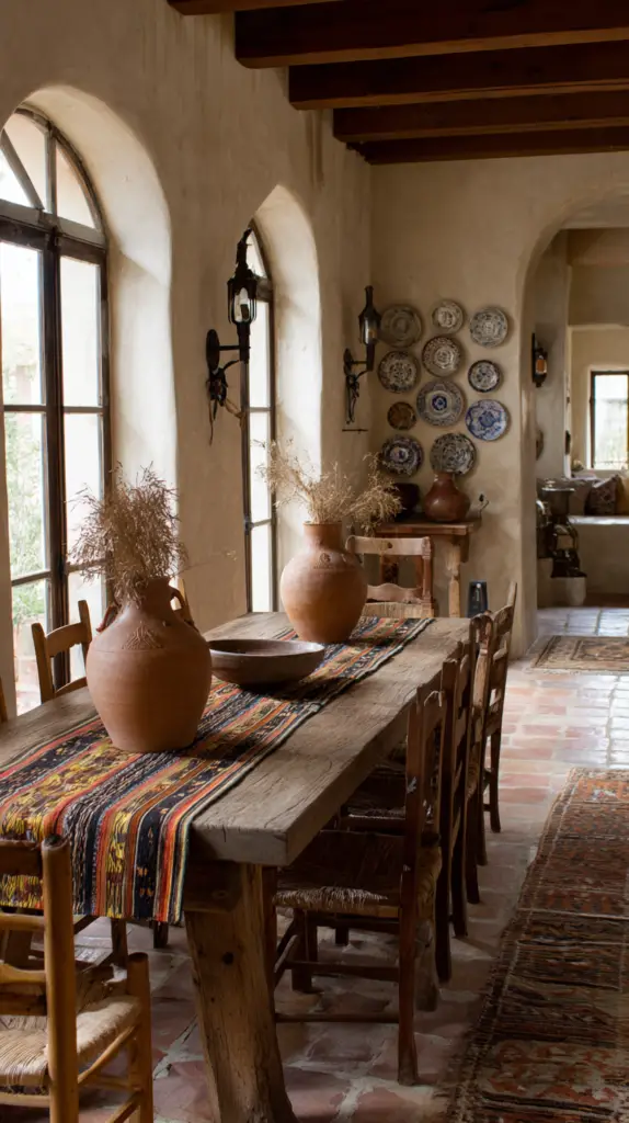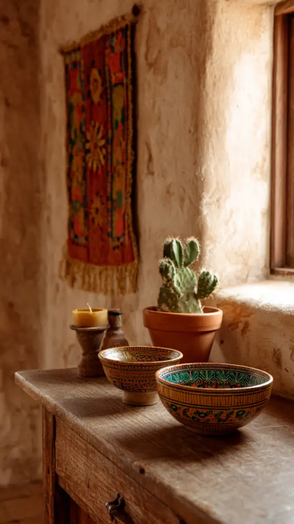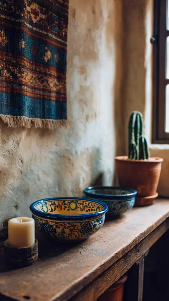 Incorporate materials like clay, stone, and wood throughout your décor. Terra cotta pots, stoneware dishes, and wooden beams (even faux ones!) can make your space feel like a rustic retreat.