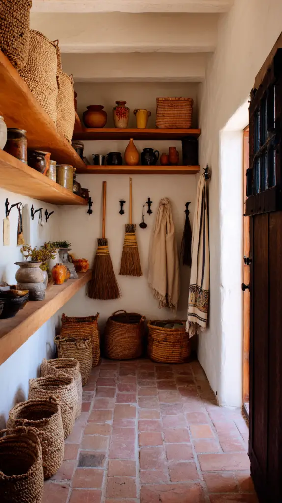 Accessorize with decor that balances function and beauty. Use woven baskets for storage, and place handmade pottery on shelves and tables. Incorporate wrought iron elements like candle holders and light fixtures to add an old-world charm. These touches will create a space that is both elegant and inviting, embodying the essence of Mexican farmhouse style.