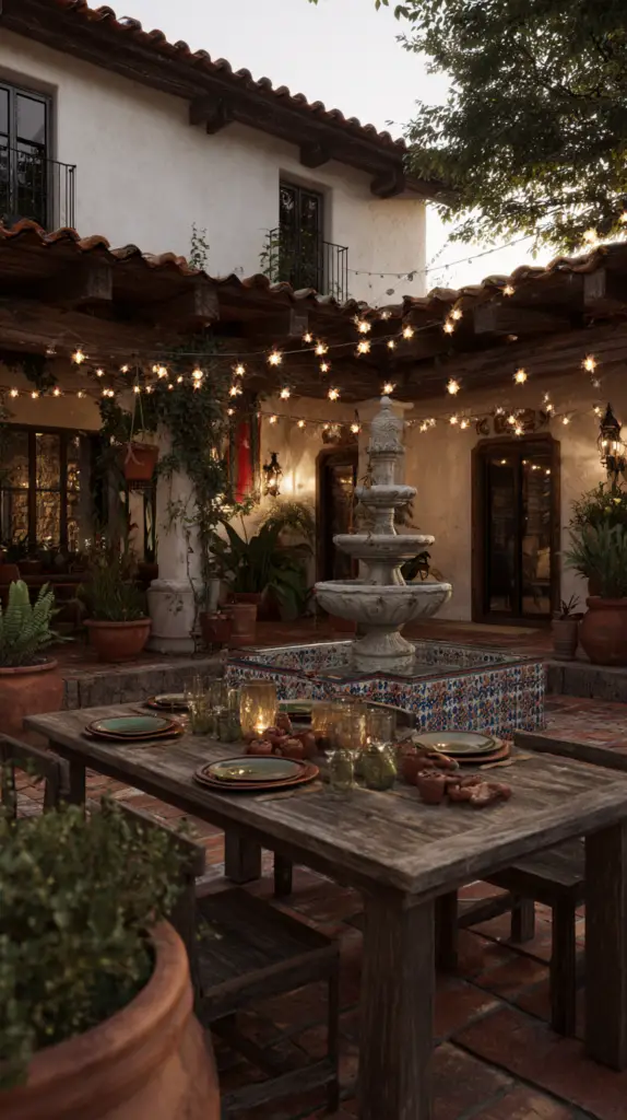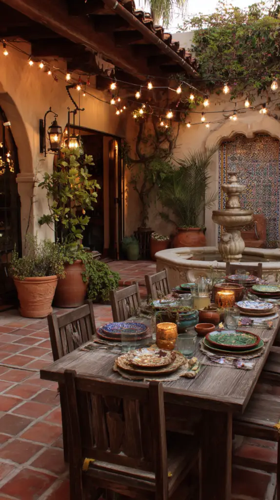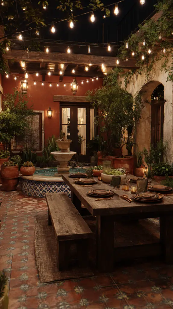 Incorporate elements that celebrate the outdoor setting. String lights or lanterns can create a magical ambiance as the sun sets. Add potted plants and succulents around the patio to bring in greenery and color. If space allows, consider a traditional Mexican chiminea or fire pit to create a focal point and provide warmth during cooler evenings.