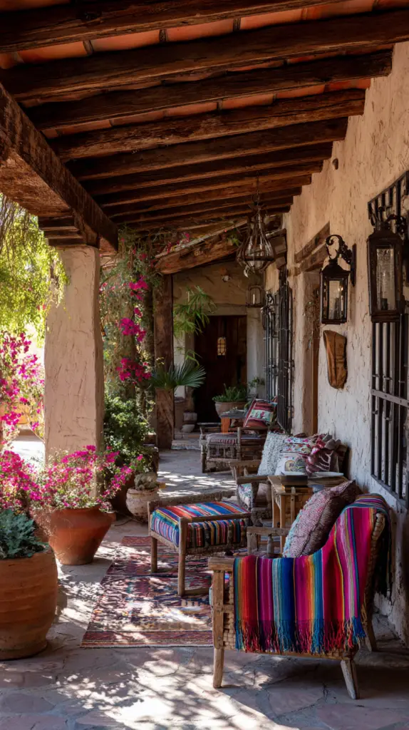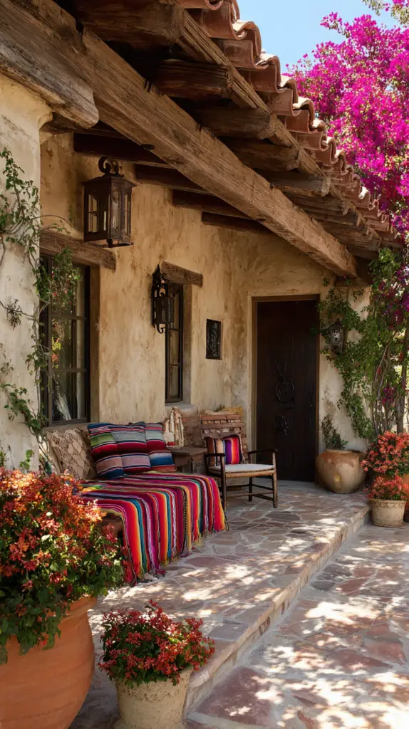 Enhance your outdoor space with elements that reflect traditional Mexican decor. Use colorful Talavera tiles for tabletops, fountains, or pathways. Add pottery, metal sculptures, and woven baskets to create a layered, eclectic look. Incorporate natural materials like wood and stone to blend seamlessly with the outdoor environment.