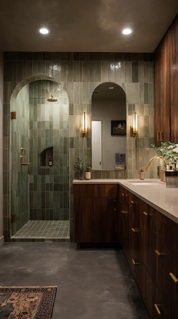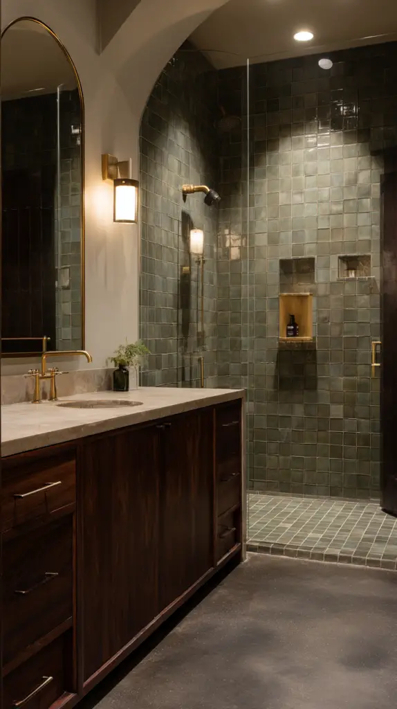 - Incorporate pops of color with tiles or accessories (think mustard yellow or teal).