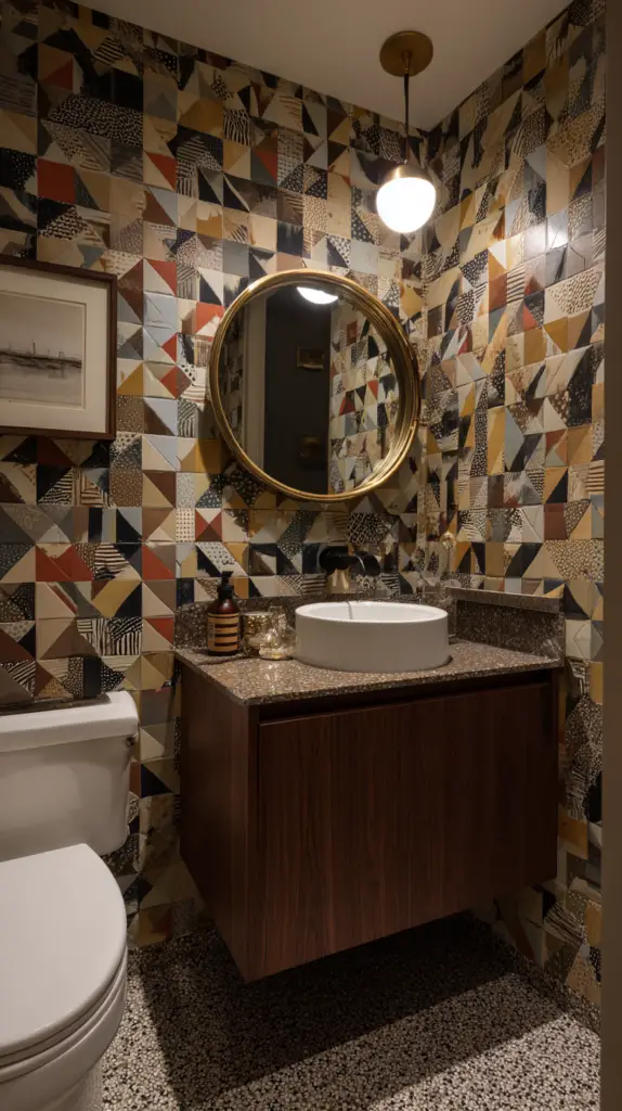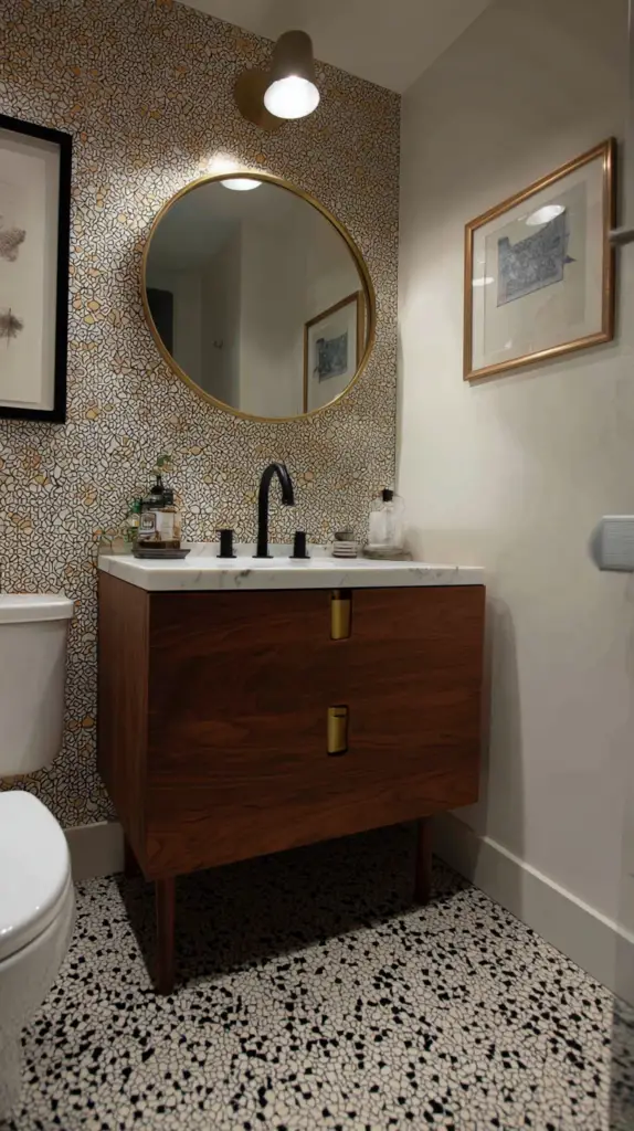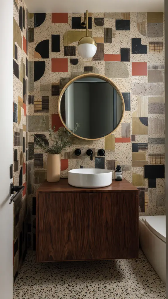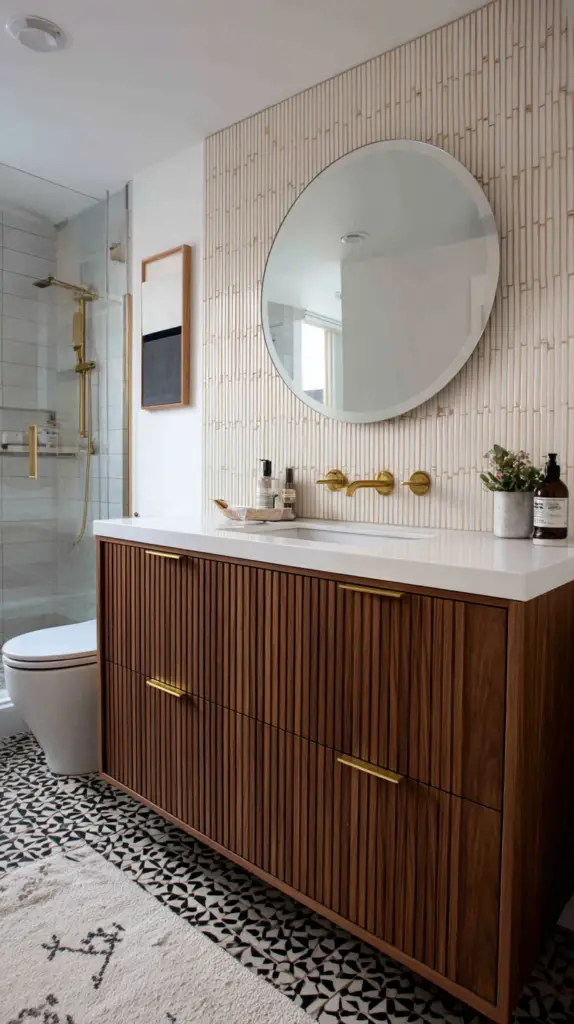 Patterns are another way to infuse mid-century flair into your bathroom. Geometric shapes, abstract designs, and even floral motifs can add visual interest and character. Consider using patterned tiles on the floor or walls to create a focal point. Wallpaper with retro patterns can also make a bold statement, especially when used on an accent wall.