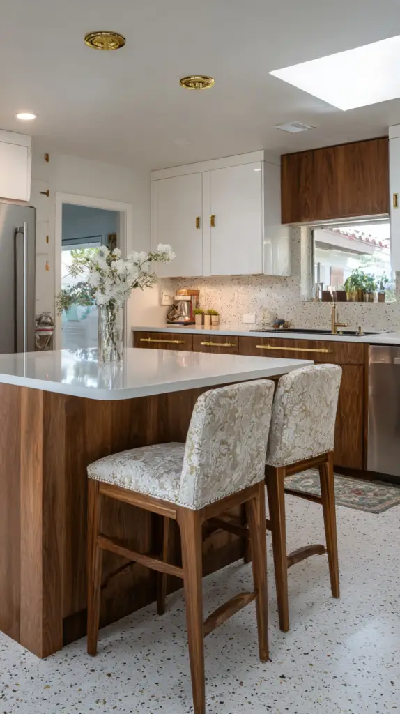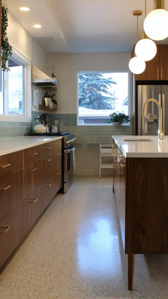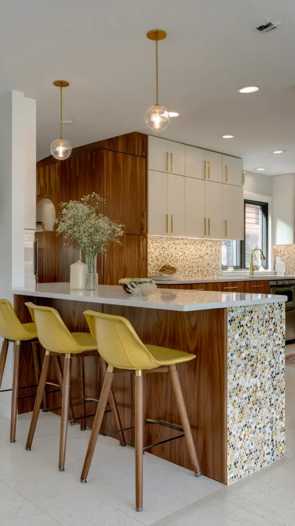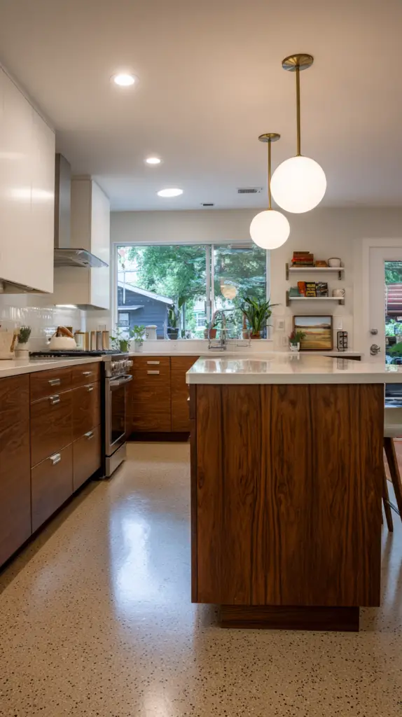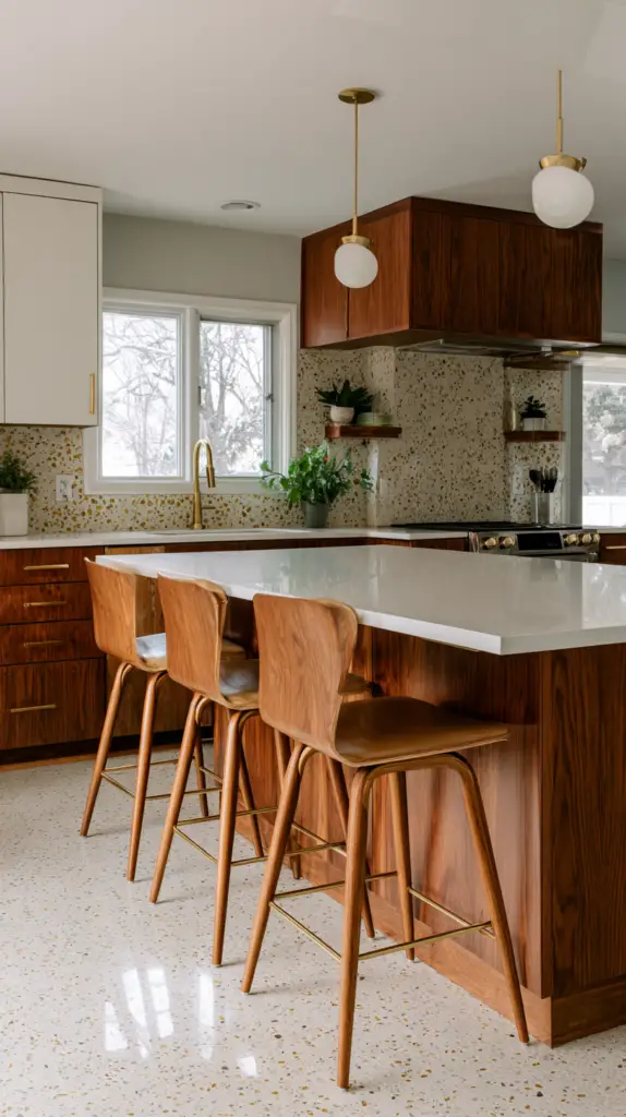 Did you know that mid-century modern design was heavily influenced by Scandinavian minimalism and Japanese simplicity? Incorporate elements like shoji screen-inspired cabinets or Danish teak furniture to add a worldly touch. It’s like taking your kitchen on a mini world tour.