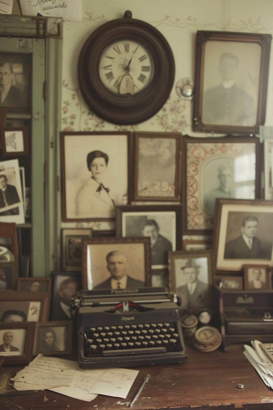 Create a display of framed vintage photographs on a wall or shelf. Incorporate items such as an antique clock, a vintage typewriter, or a collection of old letters. These personal touches tell a story and make your office feel more intimate and personalized.